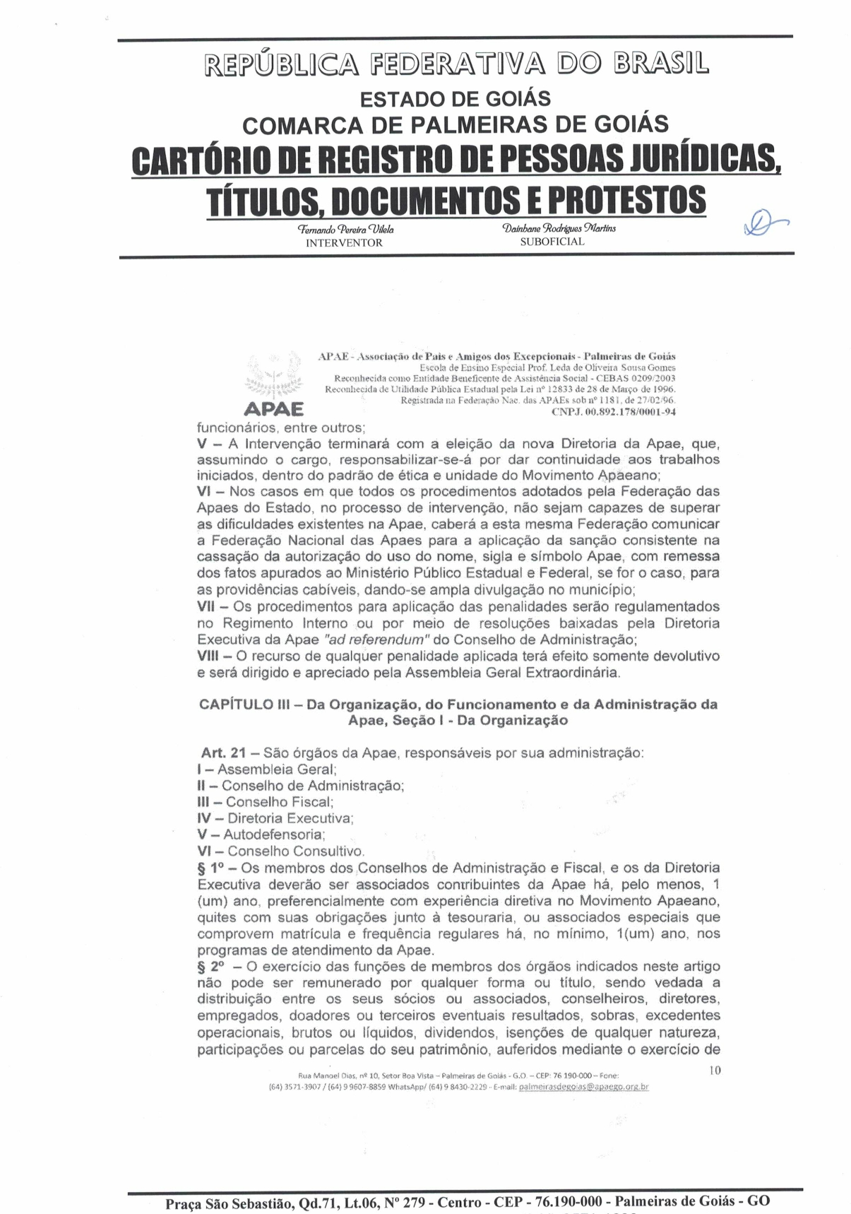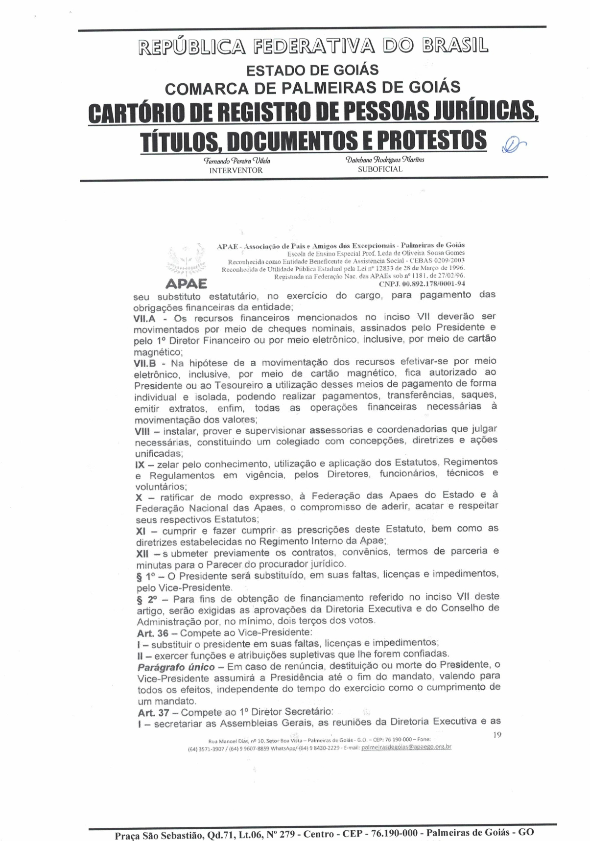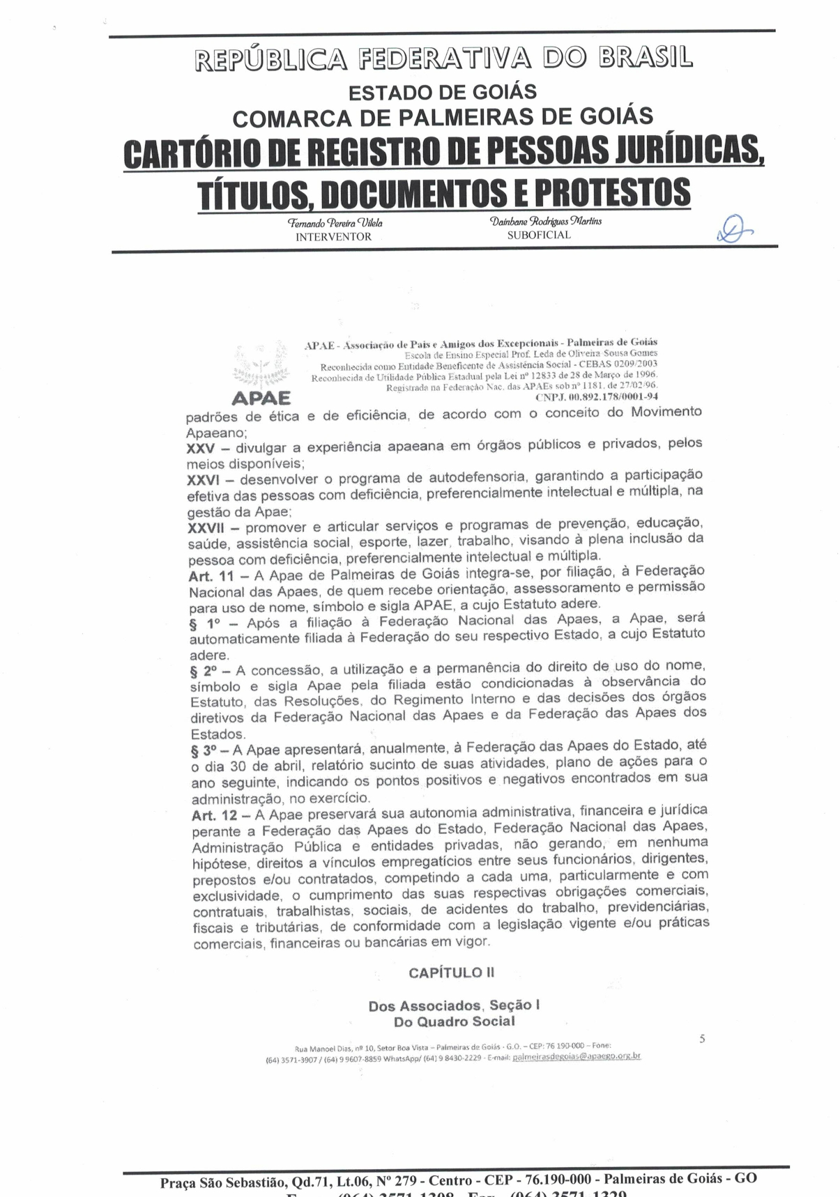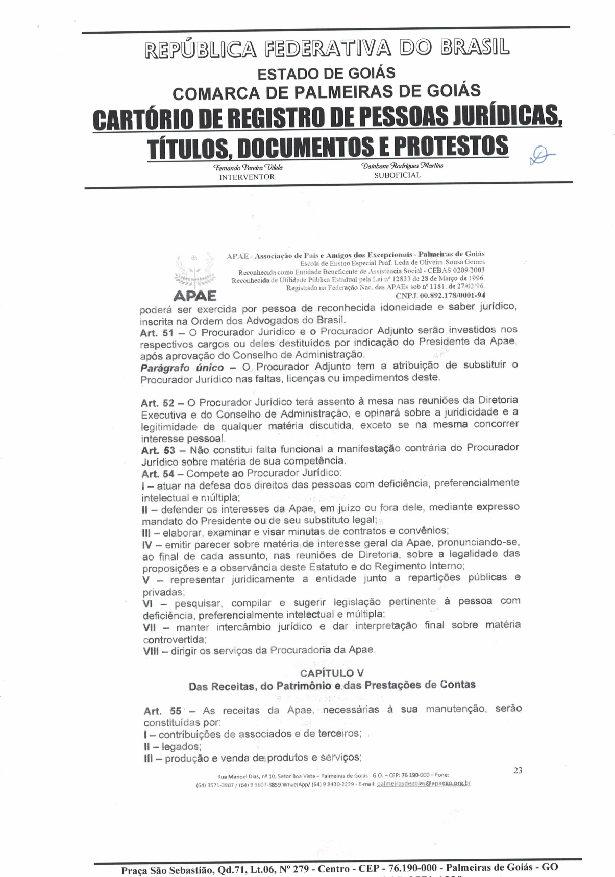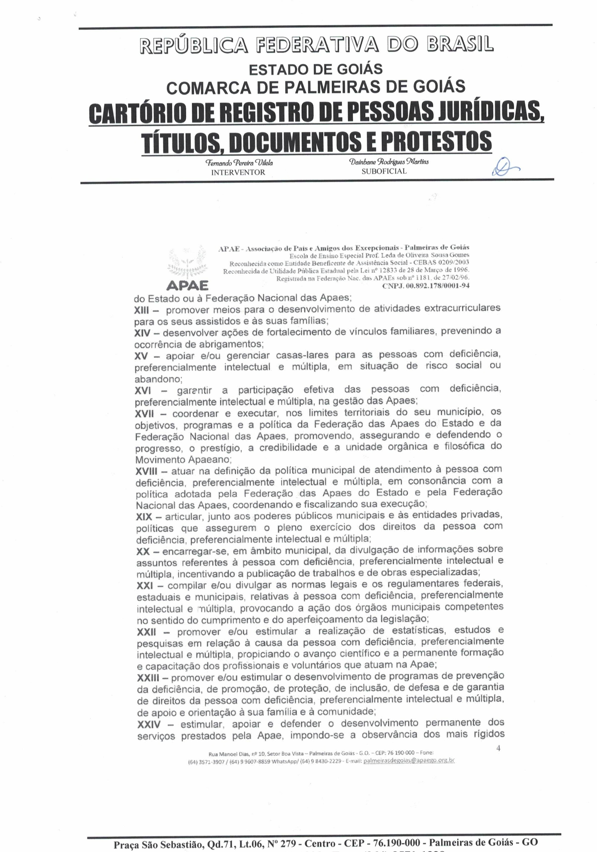 CERTIDÃO DO ESTATUDO DA APAE - PALMEIRAS DE GOIÁS 2023