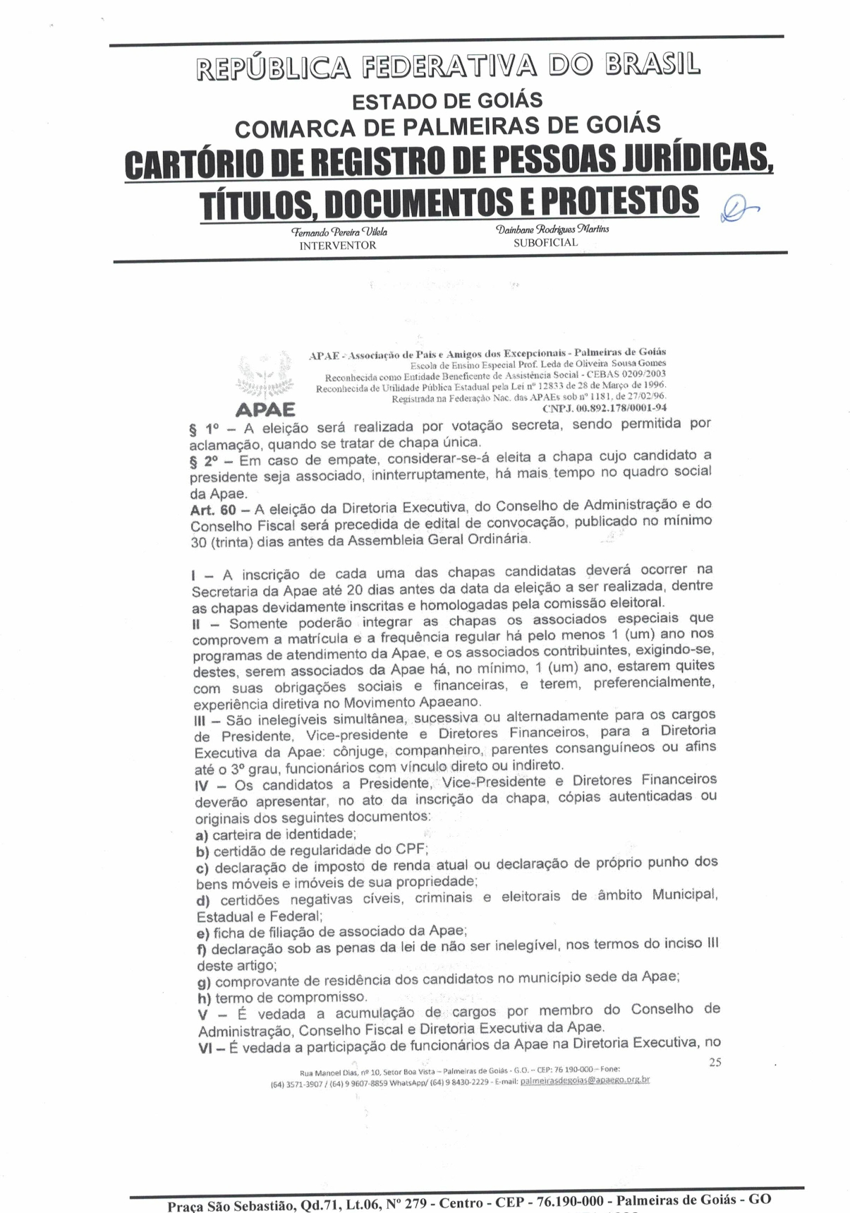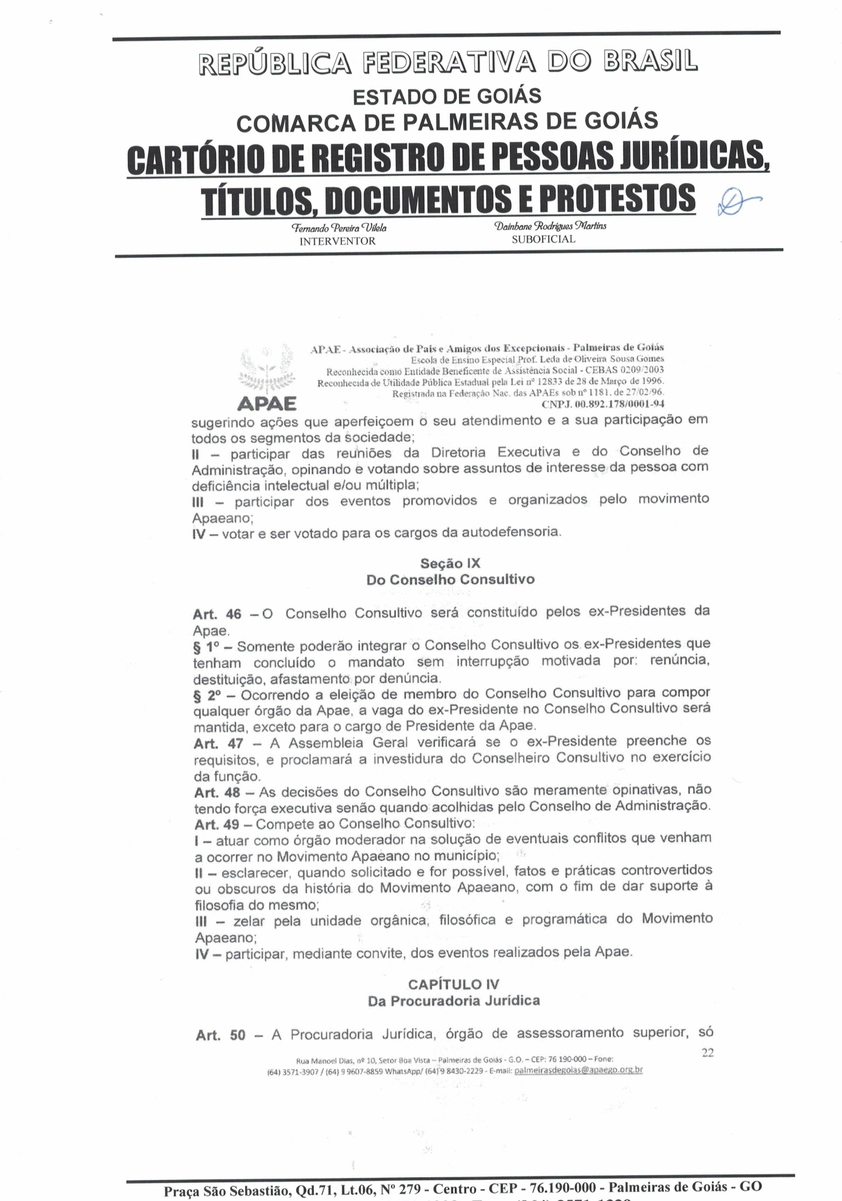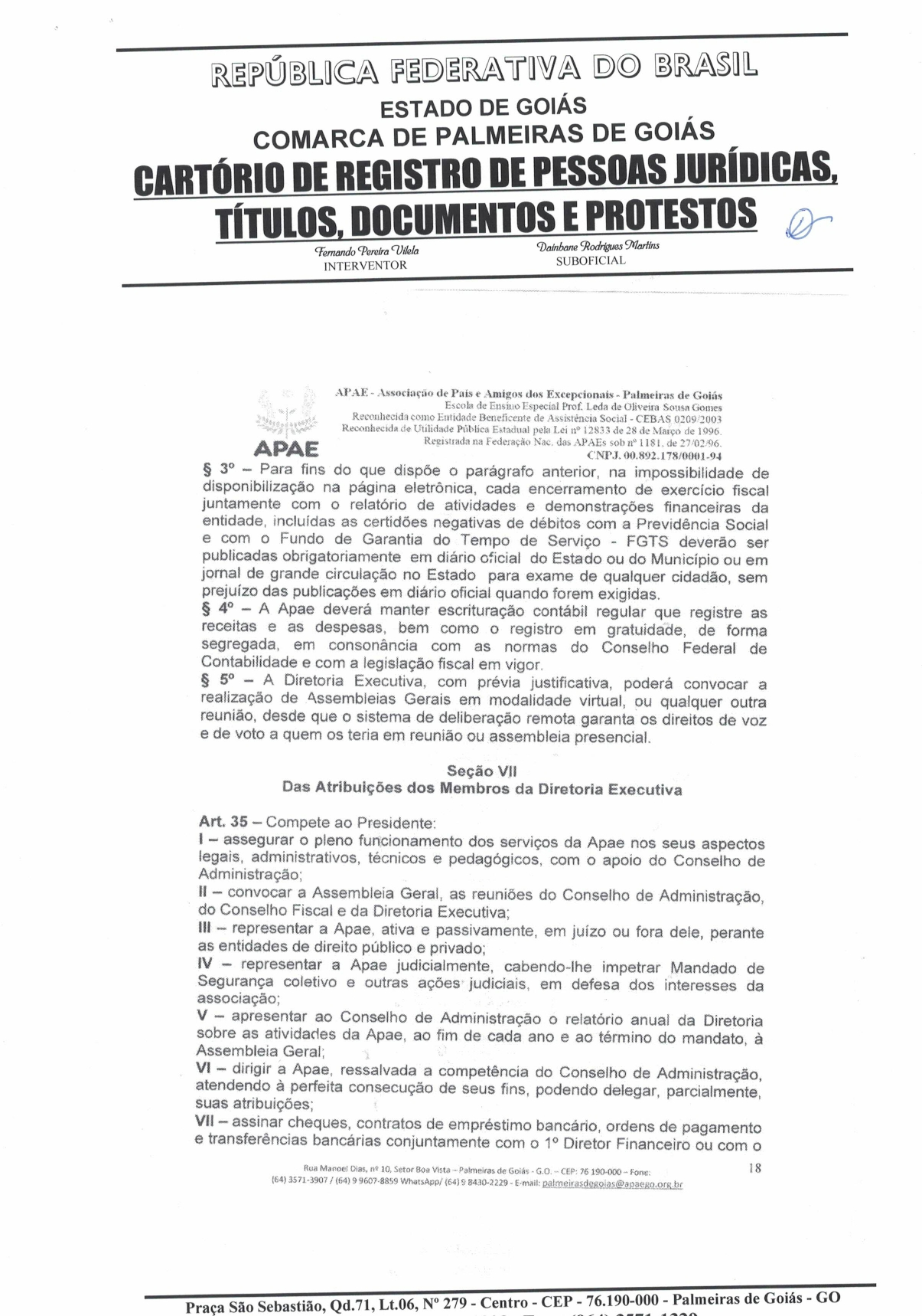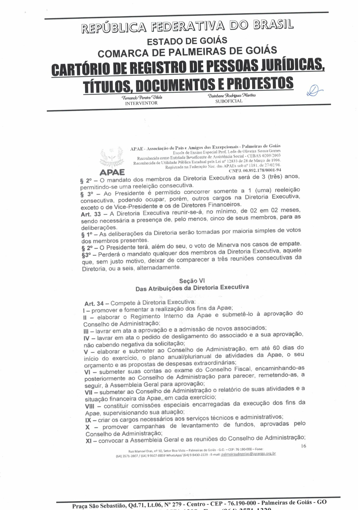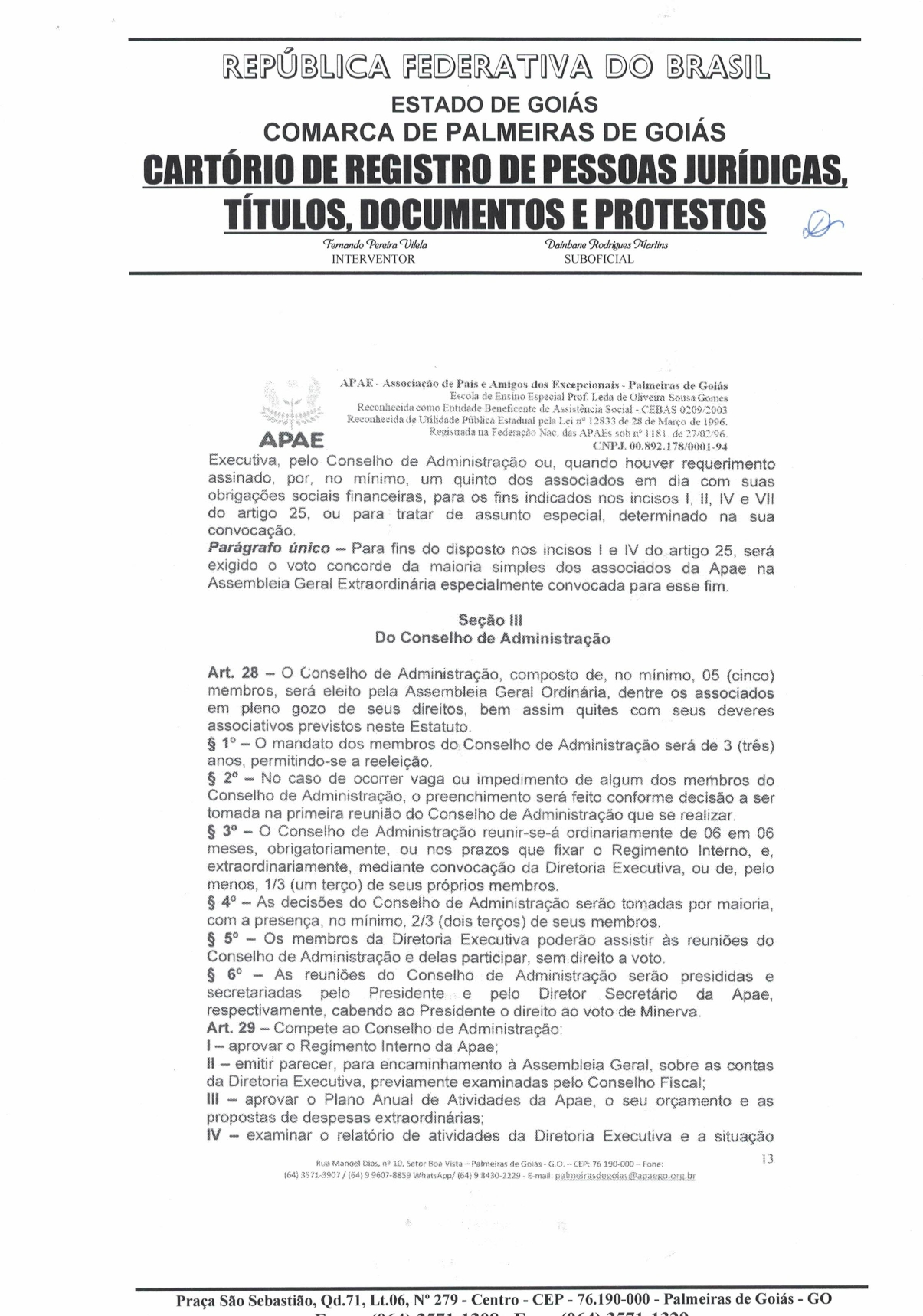 CERTIDÃO DO ESTATUDO DA APAE - PALMEIRAS DE GOIÁS 2023