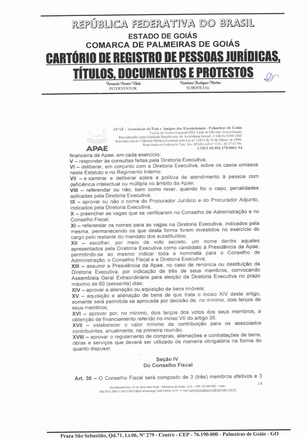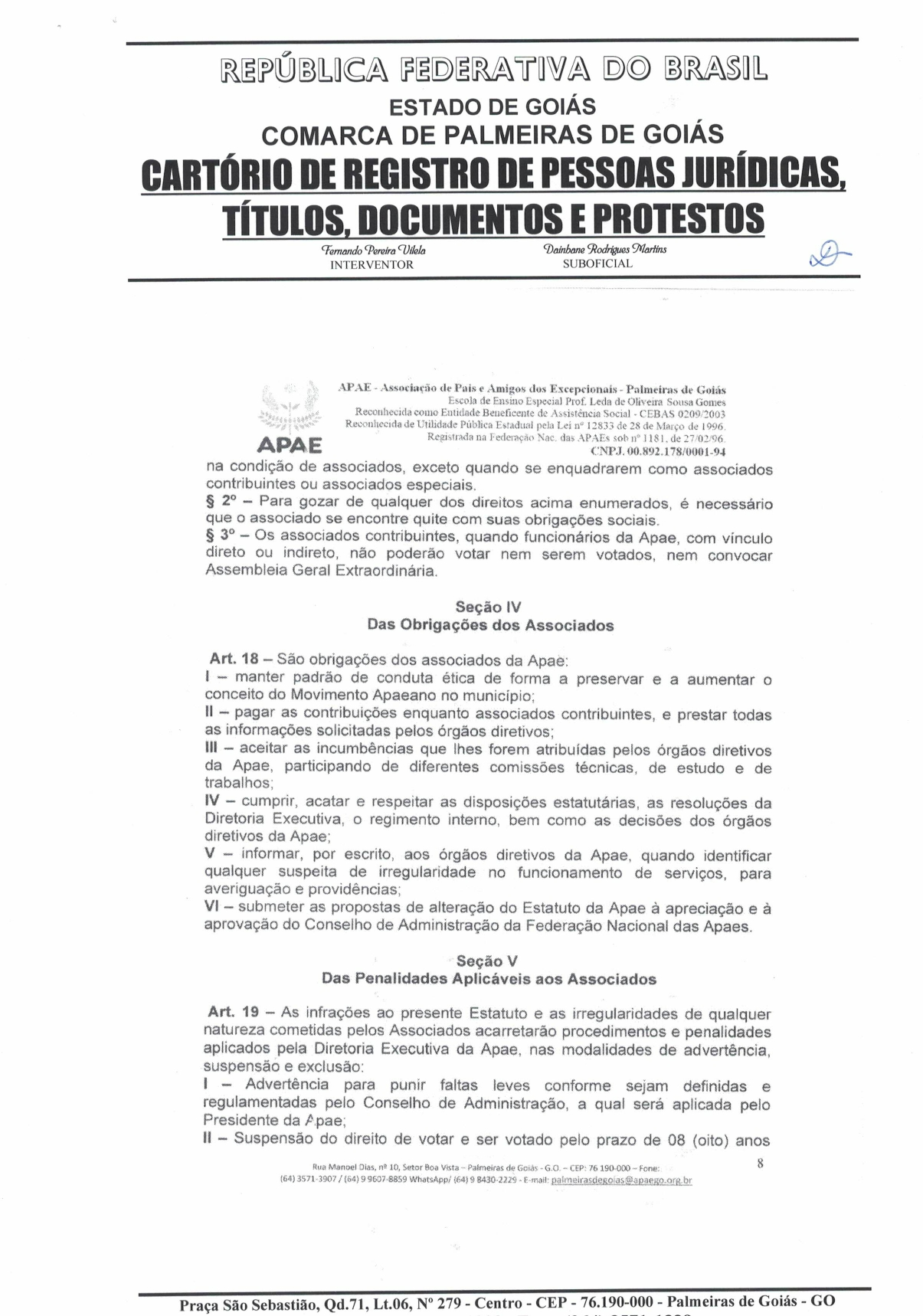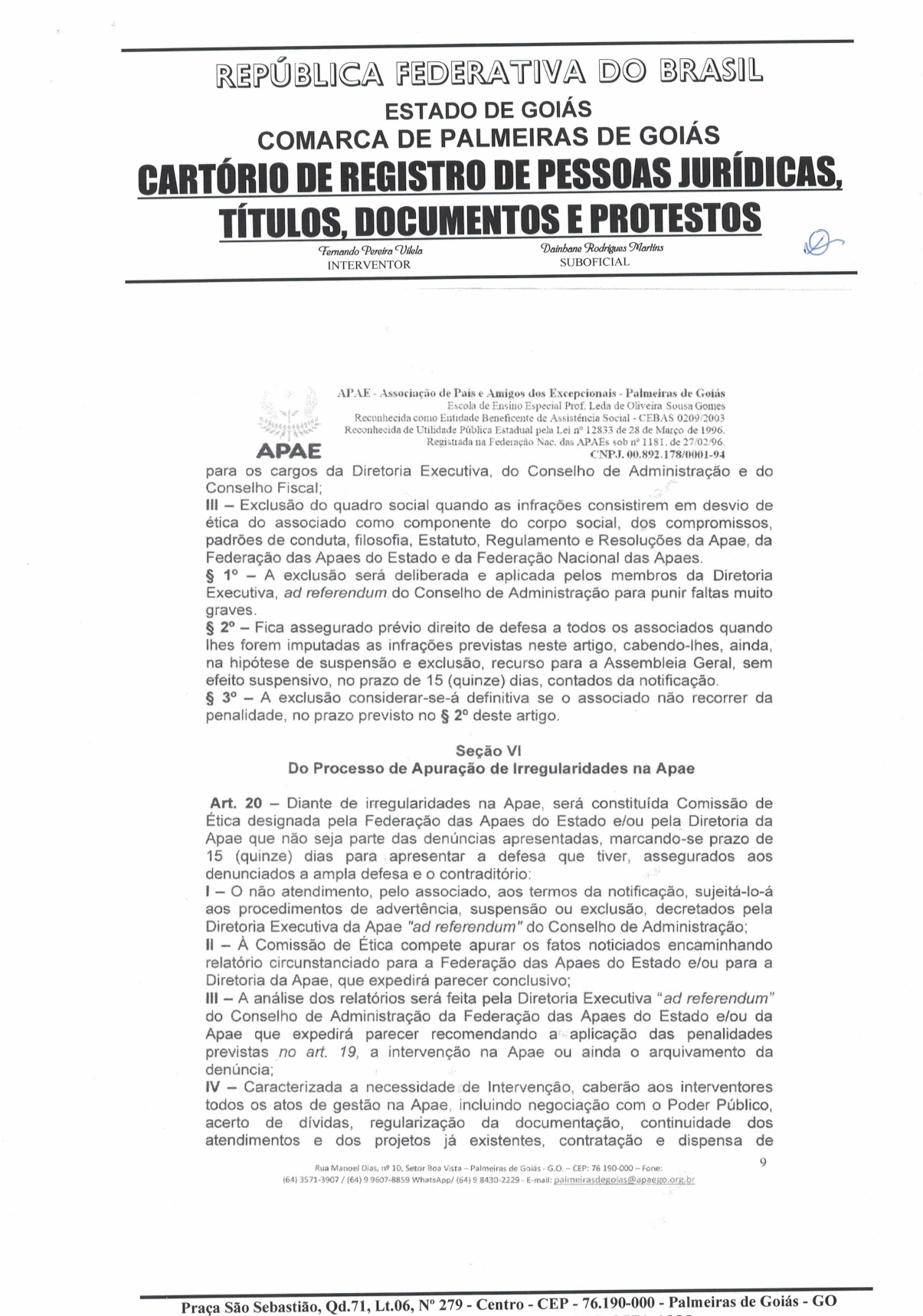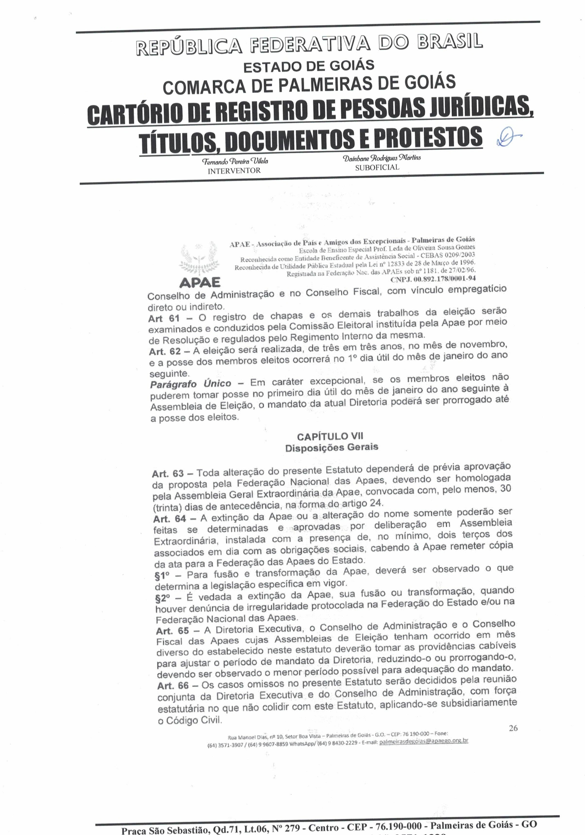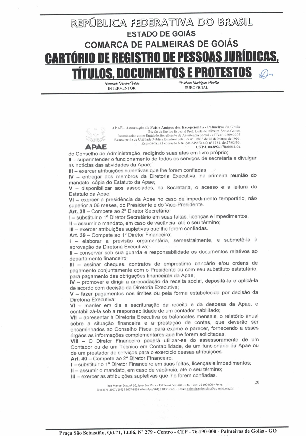 CERTIDÃO DO ESTATUDO DA APAE - PALMEIRAS DE GOIÁS 2023