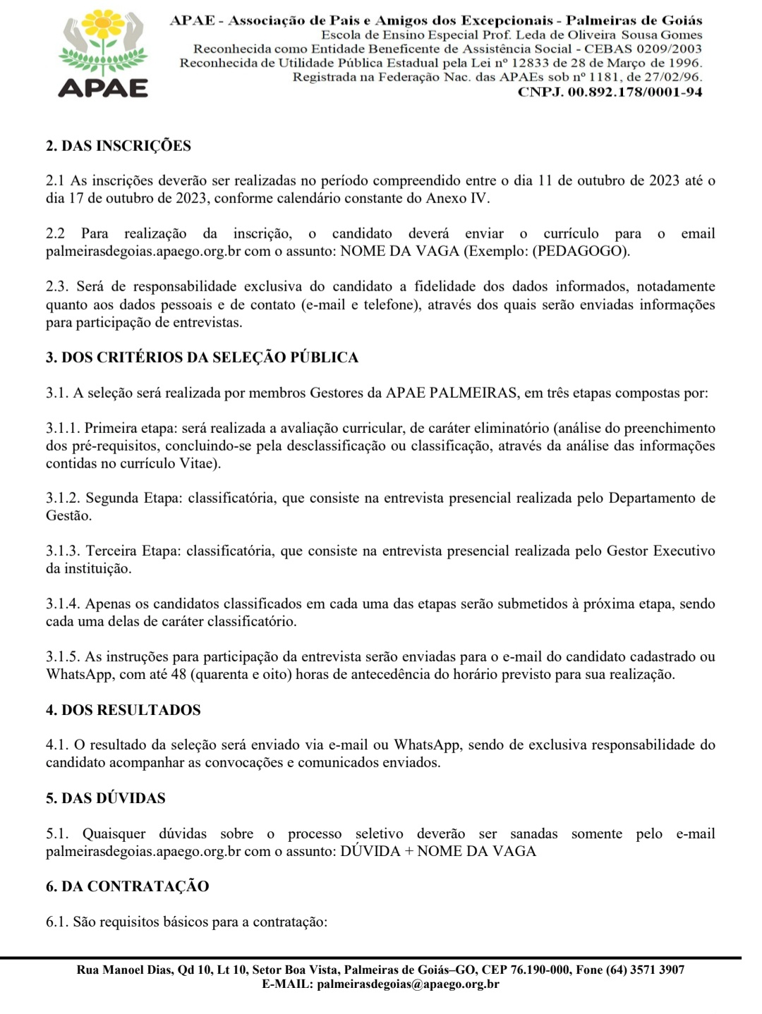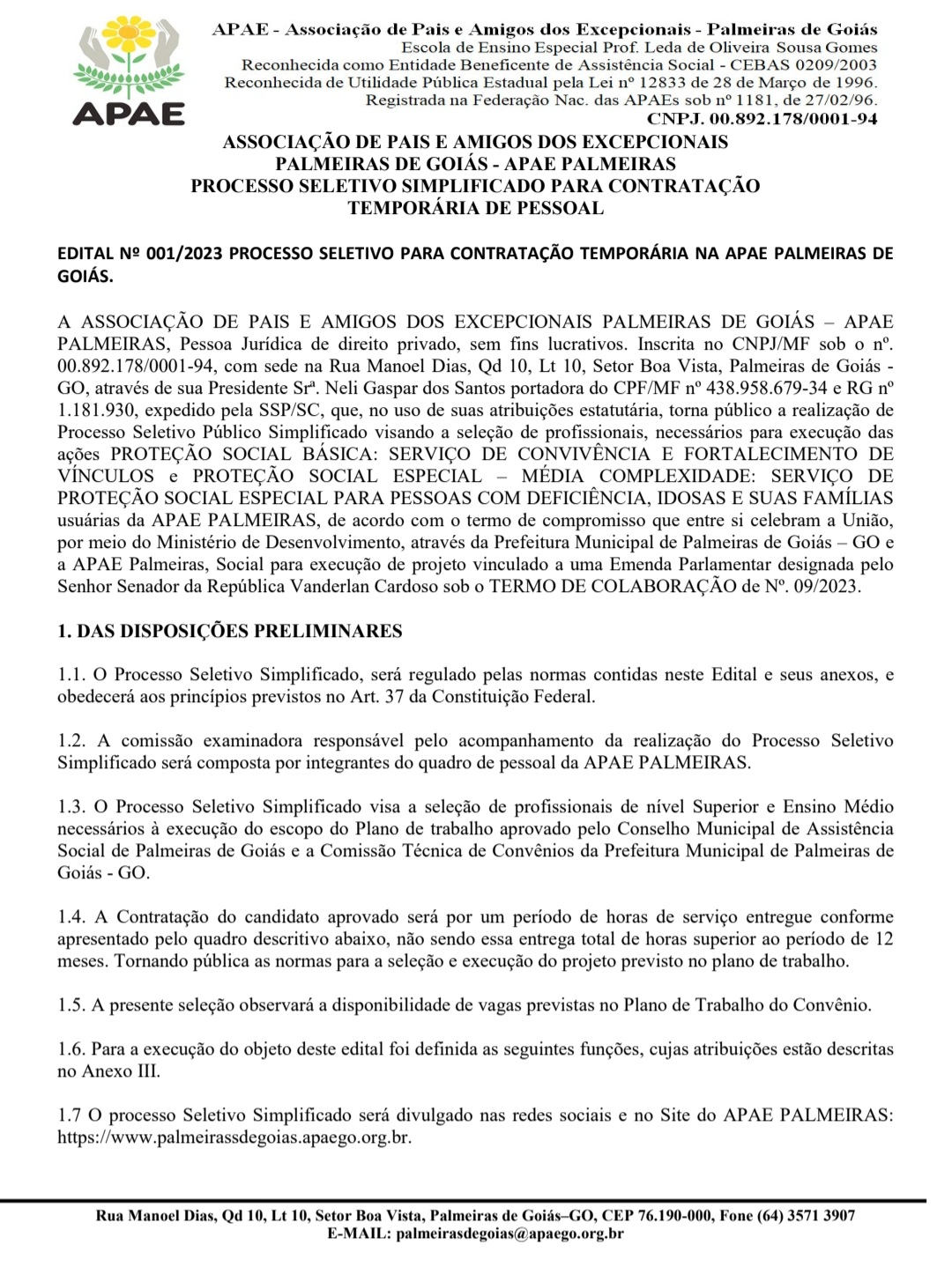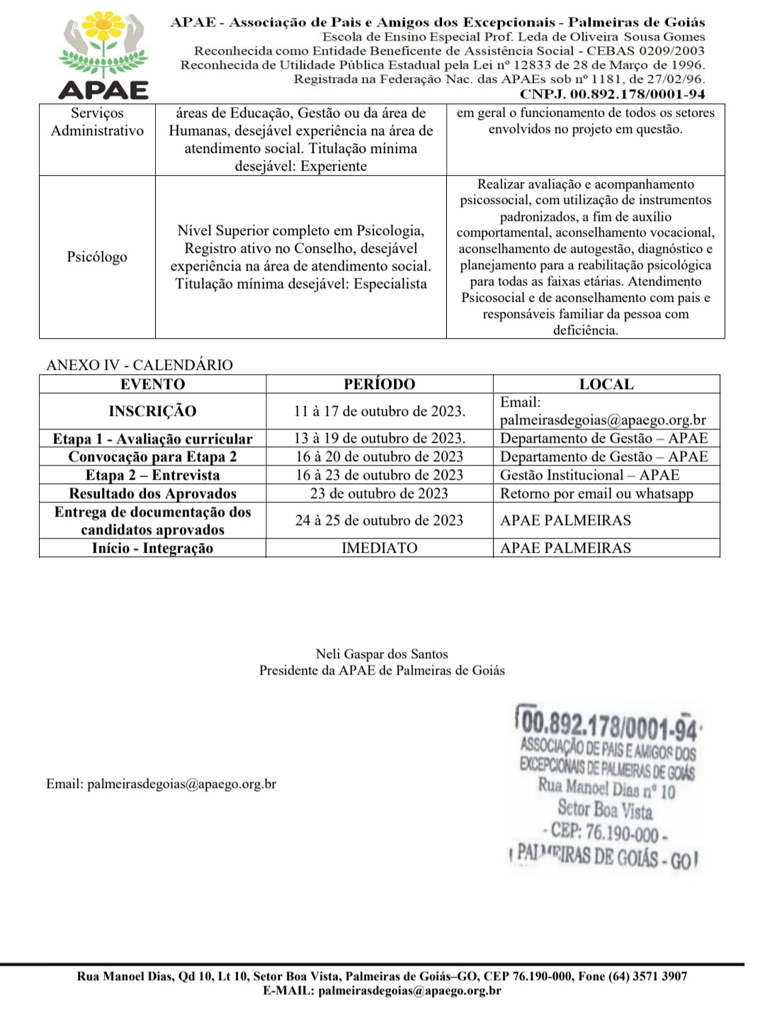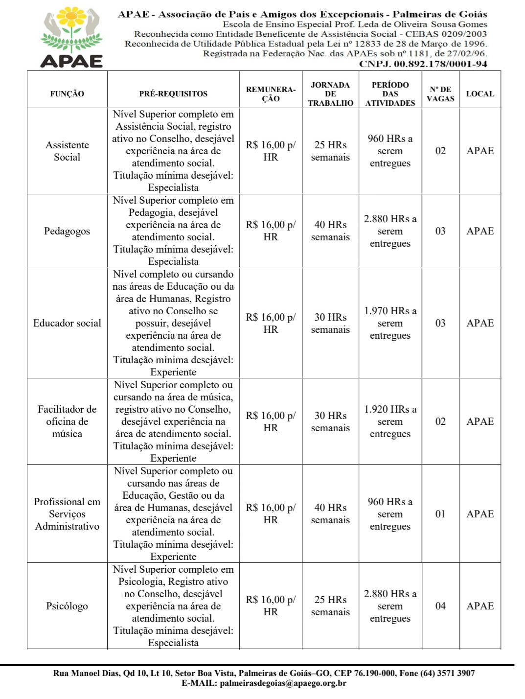 Email: palmeirasdegoias@apaego.org.br
