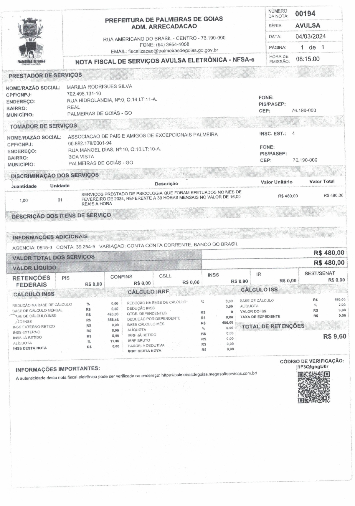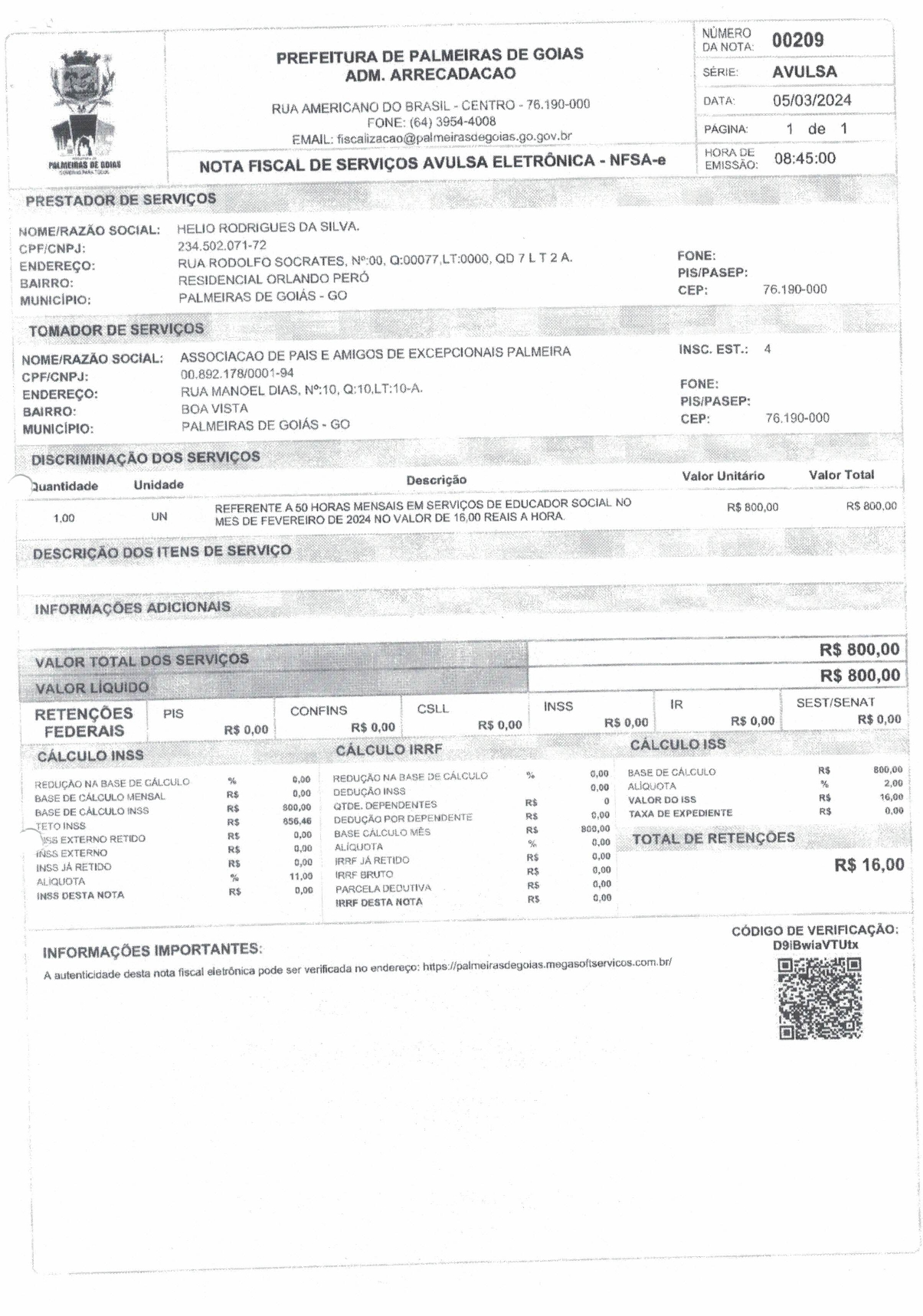 Rua Manoel Dias, , 10 - CEP: 76190000 - Palmeiras de Goiás - GO