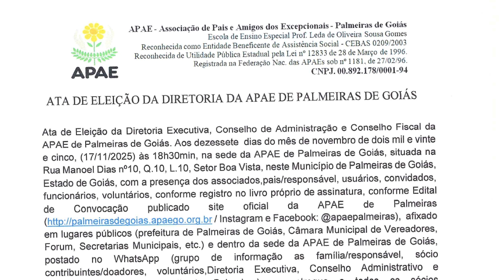 APAE PALMEIRAS DE GOIÁS