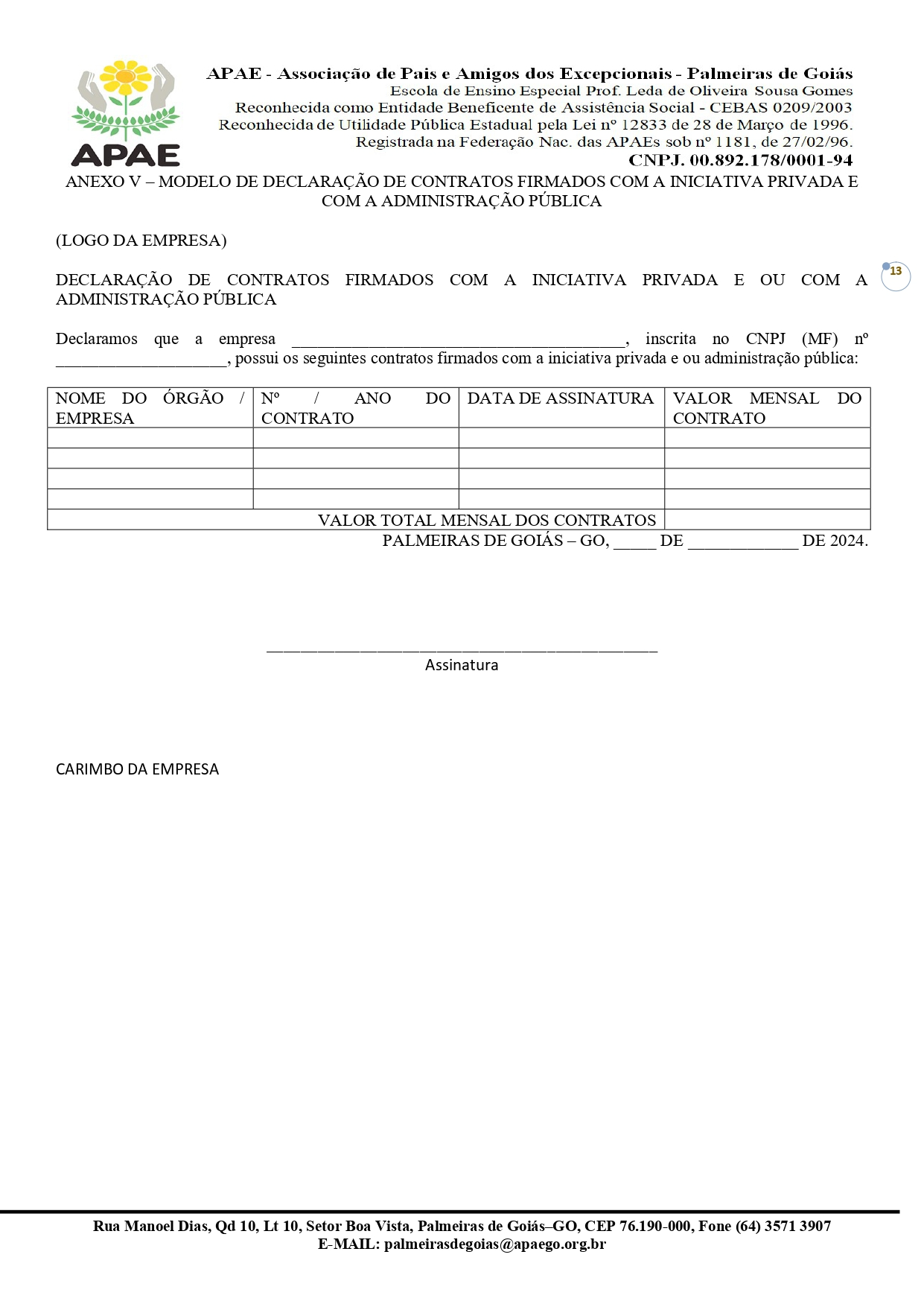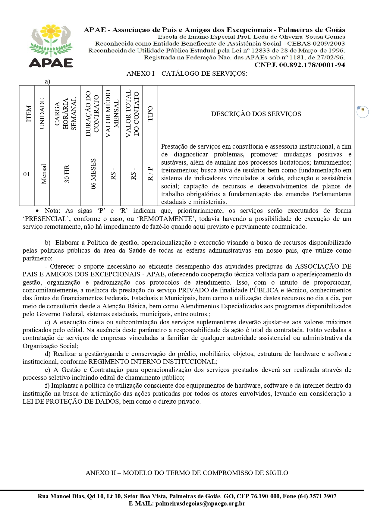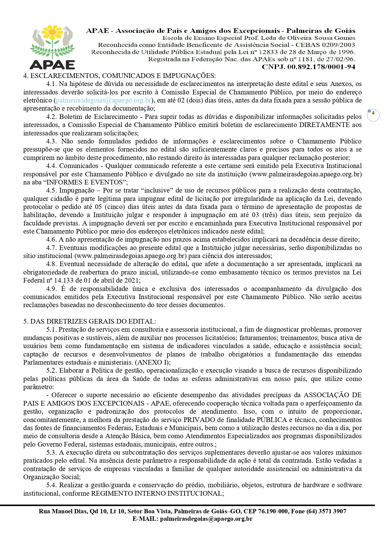 CONTRATAÇÃO DE EMPRESA QUALIFICADA PARA PRESTAÇÃO DE SERVIÇO EM GESTÃO, OPERACIONALIZAÇÃO E EXECUÇÃO DOS SISTEMAS DE SAÚDE/SUS, DA EDUCAÇÃO/FUNDEB E DA ASSISTÊNCIA SOCIAL/SUAS COM ÊNFASE NA ESPECIALIDADE DA GESTÃO PRIVADA / PÚBLICA PARA A APLICABILIDADE FINANCEIRA NA ASSOCIAÇÃO DE PAIS E AMIGOS DOS EXCEPCIONAIS DE PALMEIRAS DE GOIÁS - GO.