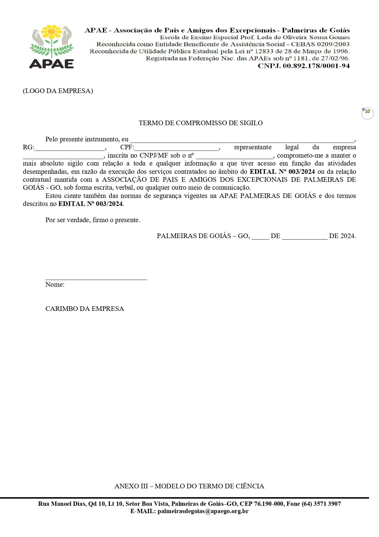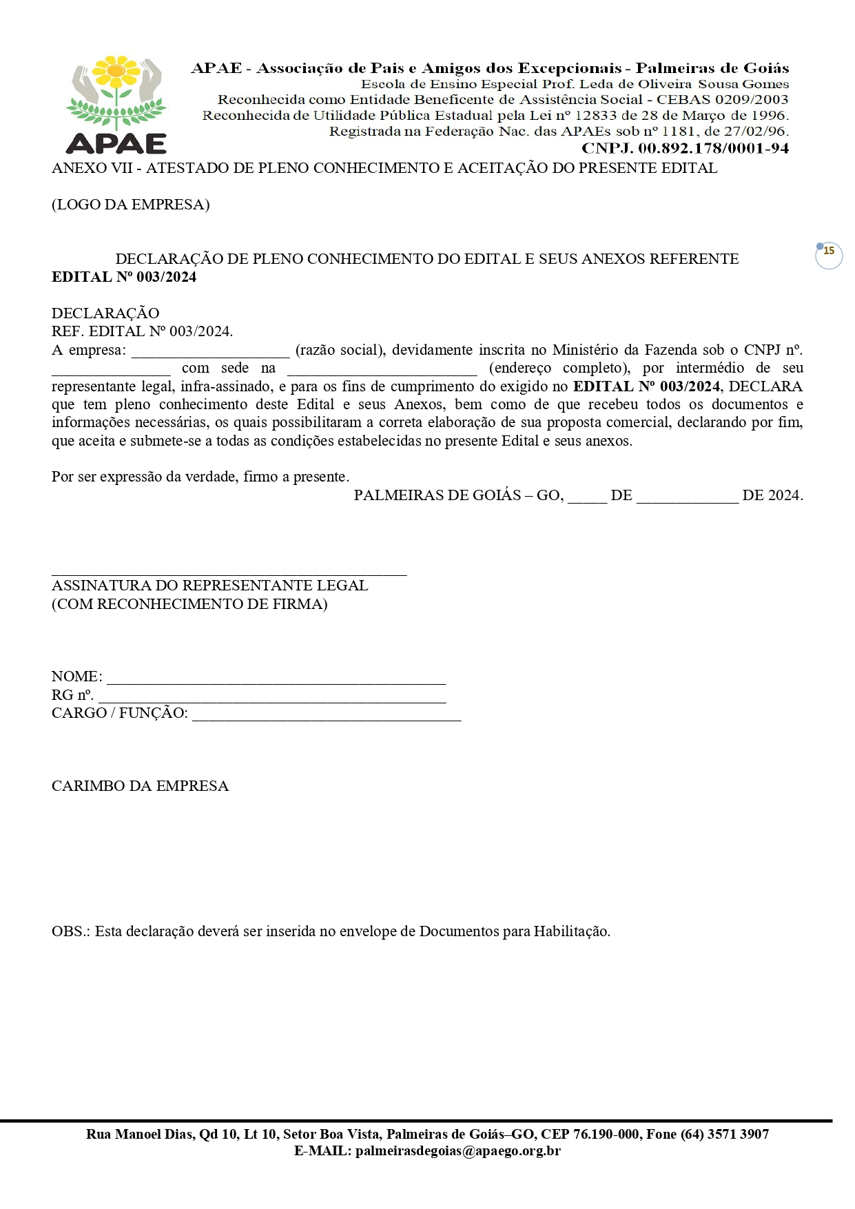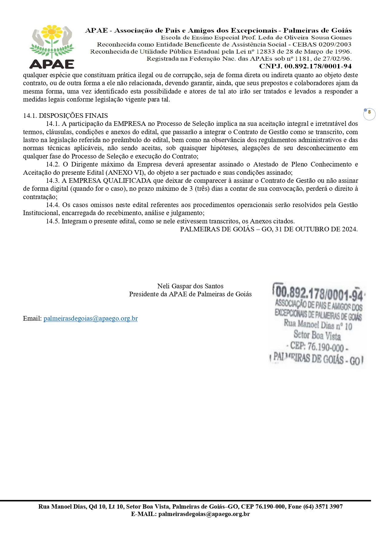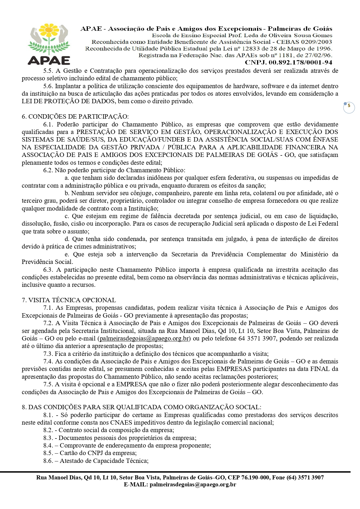 CONTRATAÇÃO DE EMPRESA QUALIFICADA PARA PRESTAÇÃO DE SERVIÇO EM GESTÃO, OPERACIONALIZAÇÃO E EXECUÇÃO DOS SISTEMAS DE SAÚDE/SUS, DA EDUCAÇÃO/FUNDEB E DA ASSISTÊNCIA SOCIAL/SUAS COM ÊNFASE NA ESPECIALIDADE DA GESTÃO PRIVADA / PÚBLICA PARA A APLICABILIDADE FINANCEIRA NA ASSOCIAÇÃO DE PAIS E AMIGOS DOS EXCEPCIONAIS DE PALMEIRAS DE GOIÁS - GO.