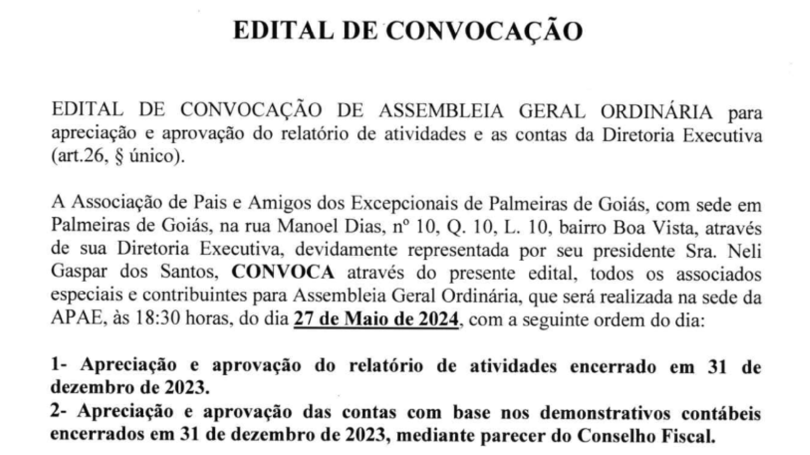 APAE PALMEIRAS DE GOIÁS